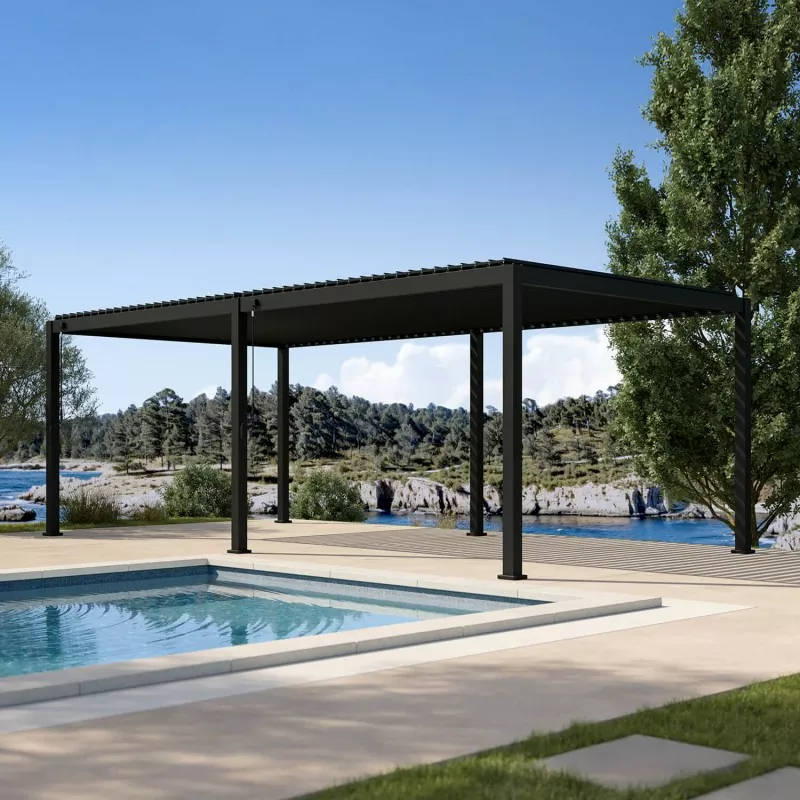 De Vionta verstelbare lamellendakpergola heeft een structuur van een zeer sterke aluminiumlegering en een intrekbaar lamellenontwerp. Door de zonlichthoek aan te passen via een mechanisch precisiesysteem, wordt een ideale buitenervaring bereikt met regelbaar zonlicht, soepele ventilatie en betrouwbare bescherming tegen regen. Het is niet alleen een parasol, maar ook een intelligent, flexibel en duurzaam buitenlevensysteem waarmee u 365 dagen per jaar ten volle van het buitenleven kunt genieten.