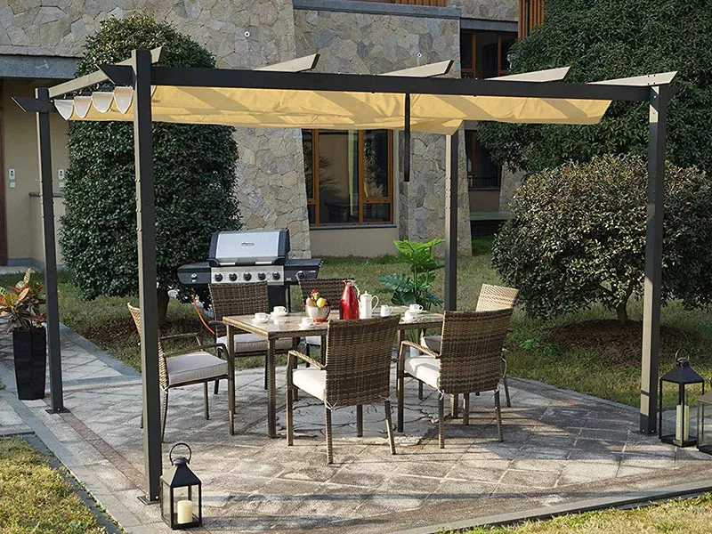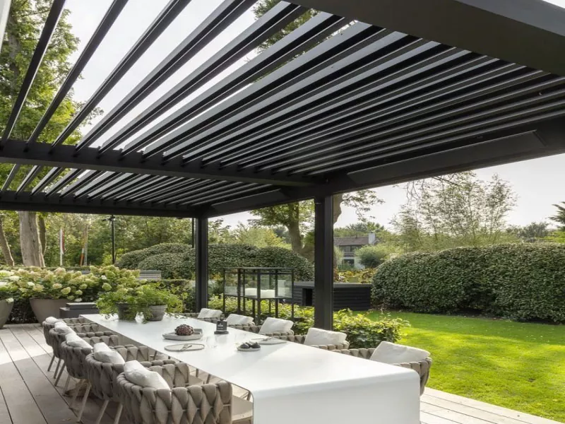 Als professionele fabrikant en leverancier van aluminium pergola's in China,Viontabiedt service op maat. De pergola biedt schaduw en ruimteverdeling voor terrassen, achtertuinen en zwembaddekken, en is lange tijd een populair gebouw geweest voor woonruimtes buiten. Aluminium pergola's zijn bijvoorbeeld verkrijgbaar in verschillende soorten daken, waaronder permanente daken die volledige schaduw bieden, intrekbare zonwering, glasmaterialen en waterdichte stoffen, geschikt voor verschillende buitenscenario's zoals eetruimtes, zwembaden, barbecues en rustplaatsen buiten.