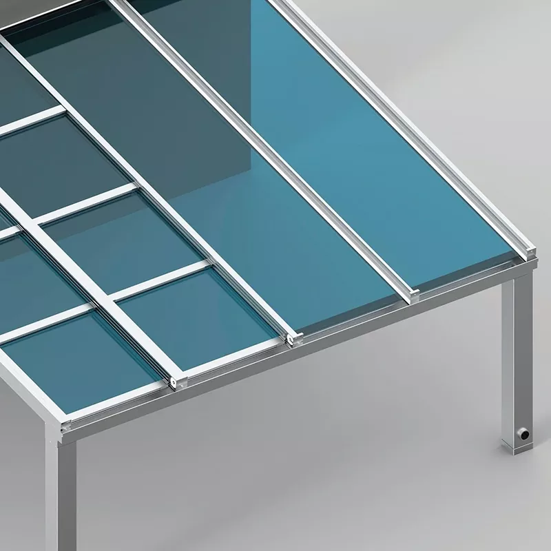Er is een geïntegreerd afvoersysteem aan de bovenkant en het regenwater wordt via de binnenkant van het dakframe naar de kolommen afgevoerd en vervolgens via de onderkant afgevoerd.